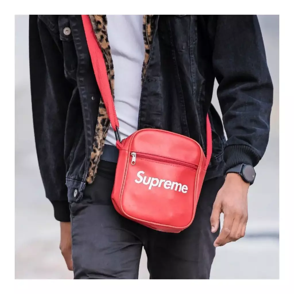 Shoulder Bag 24fw Supreme na elegante cor preta, feita em couro sintético de alta qualidade, perfeita para quem busca um acessório moderno e funcional. Com tamanho compacto, é ideal para carregar seus pertences essenciais com conforto e segurança.