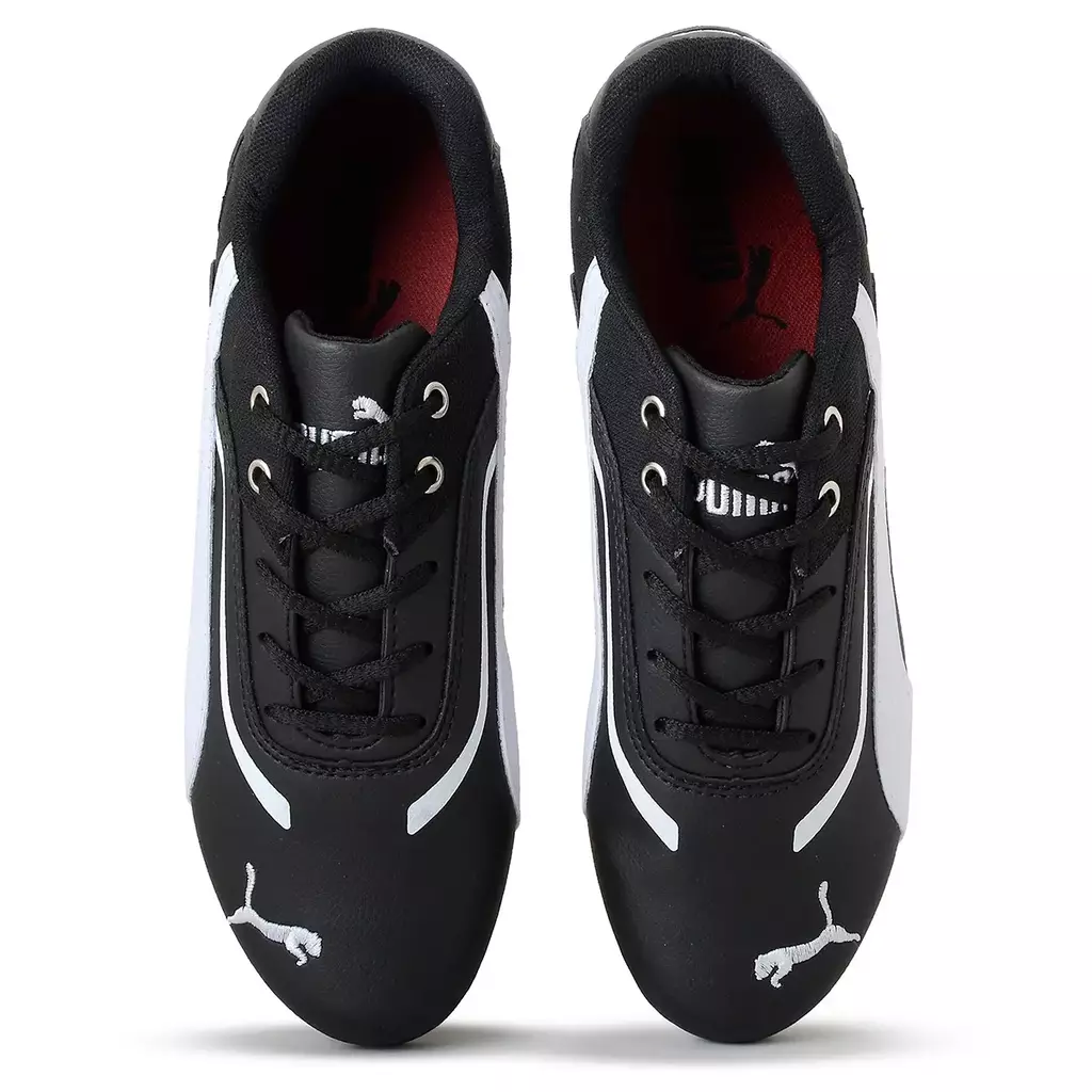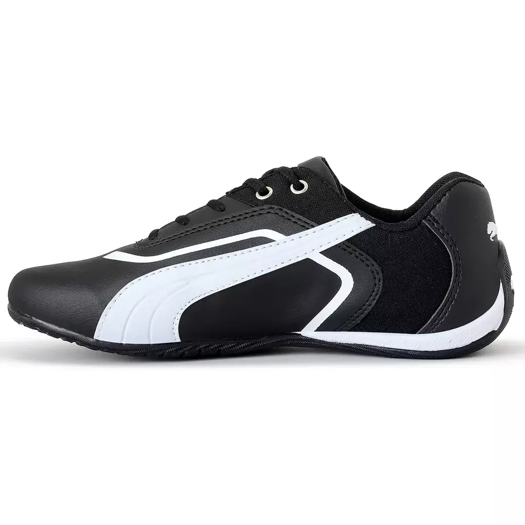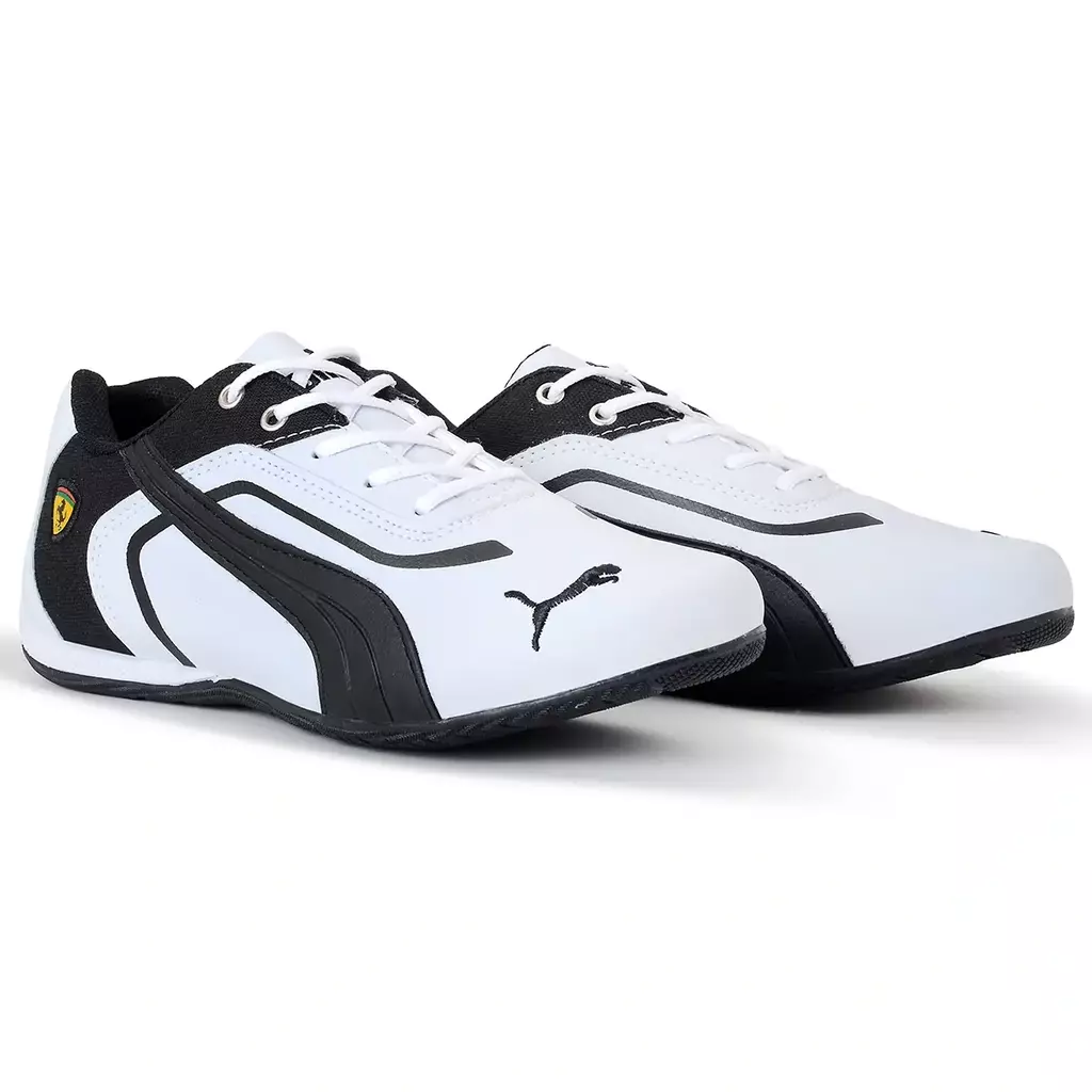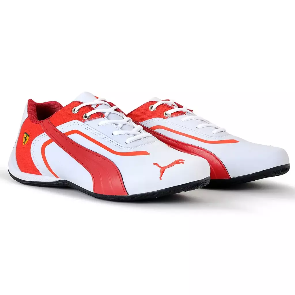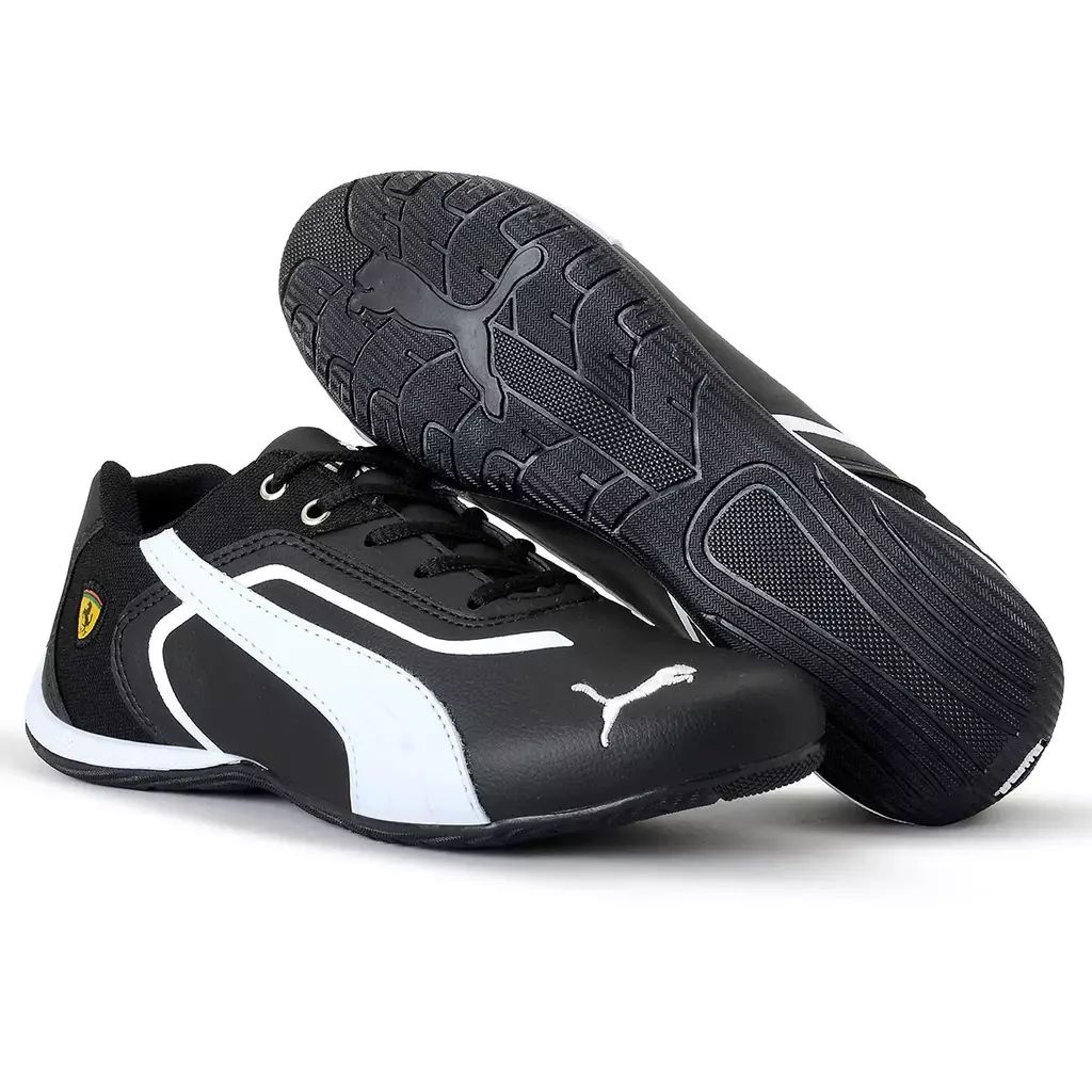 O cabedal conta com detalhes sutis que remetem ao estilo automobilístico, incluindo o icônico logo da Ferrari na lateral, o que reforça a parceria entre a Puma e a famosa escuderia de Fórmula 1., sua sola oferece excelente aderência e tração, garantindo estabilidade em diversos tipos de superfícies.